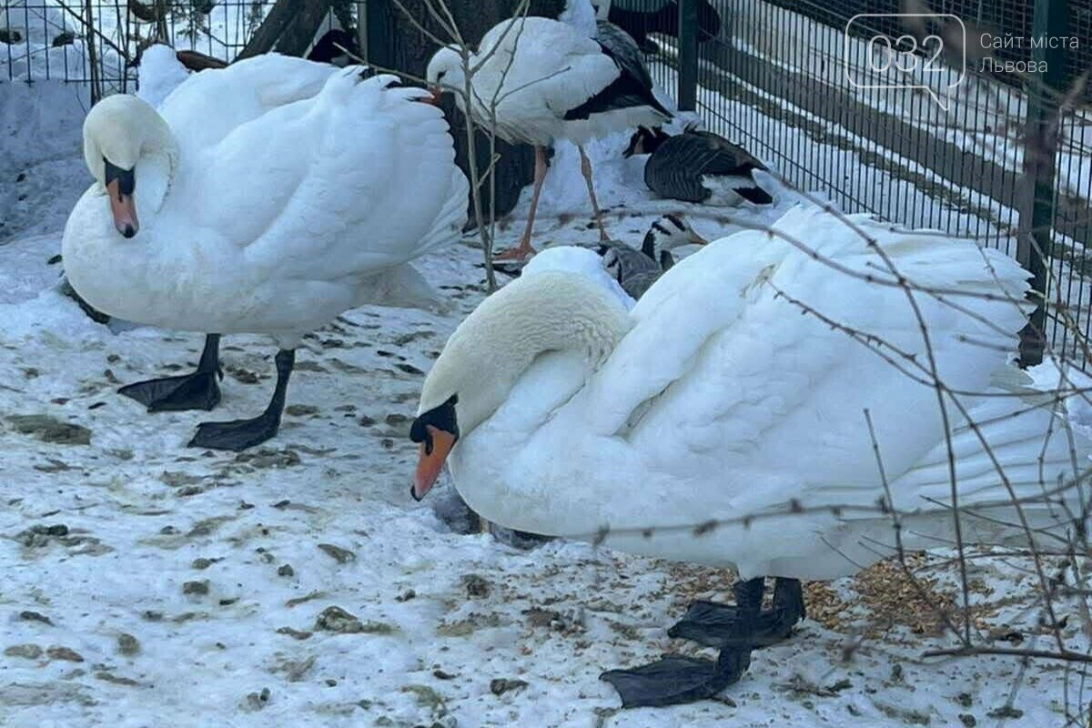 Подбали і про мешканців водойм Стрийського парку – білих лебедів. Перед сильними морозами їх перевезли до міського дитячого еколого-натуралістичного центру на вулиці Кубанській. За словами доглядачів, птахи почуваються добре, не стресують і щодня виходять на прогулянки. Там вони перебуватимуть до настання потепління.